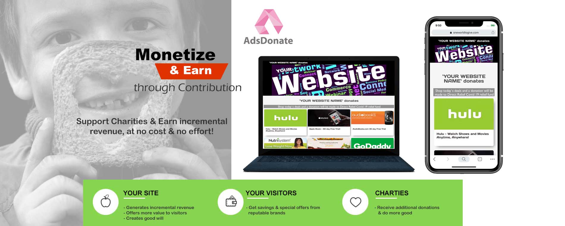 Ads Donate is a tool that helps websites & their online visitors, do their part in contributing to worthy causes, without costing them anything extra.